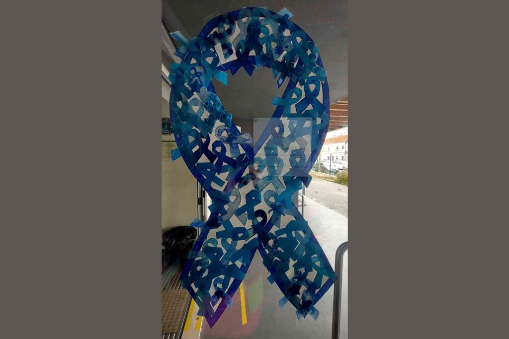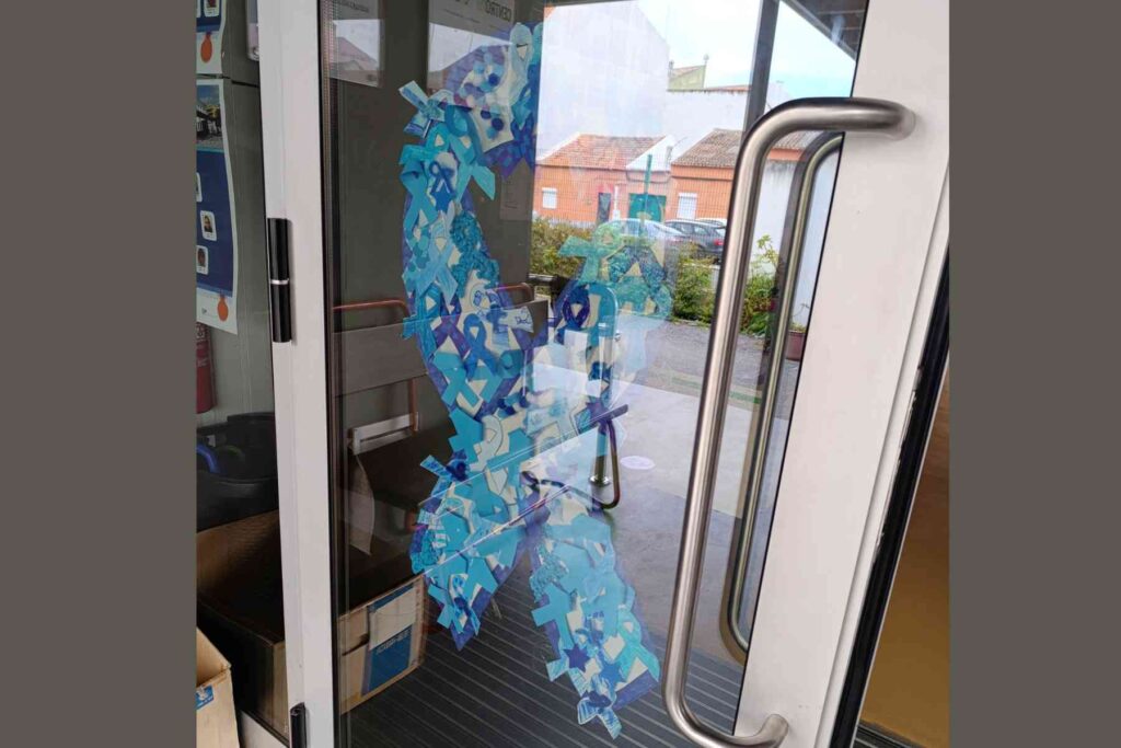 Na escola, foi ainda desenvolvida a atividade coletiva “Laços com Laços”, que envolveu todos os alunos, que participaram com a elaboração de laços azuis e que se encontra exposta, desde o dia 30 de abril, na entrada de cada bloco, no acesso às salas de aulas.