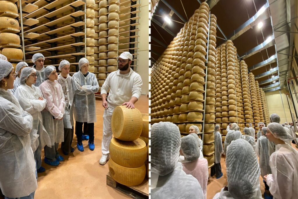 A participação em workshops, como a aula de culinária tradicional italiana e a aula de dança, reforçou o trabalho em equipa, a cooperação e a valorização das tradições culturais. Os alunos tiveram ainda a oportunidade de explorar temas ligados à sustentabilidade, nomeadamente através da visita a uma produção de Parmigiano Reggiano, onde contactaram com práticas de produção responsáveis e com o conceito de proteção de produtos de origem na União Europeia.