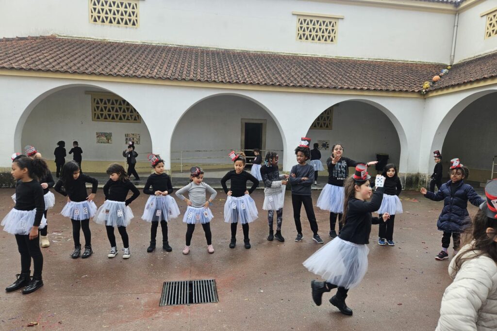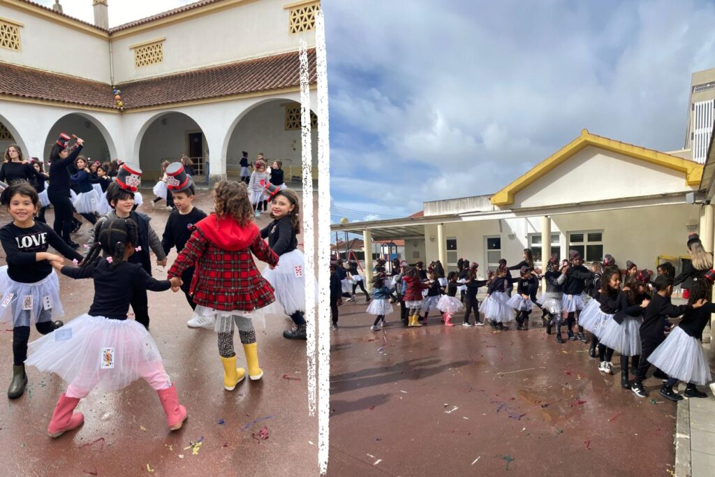Carnaval, folia na escola! Apesar de um ano sem cortejo e brincadeira na expo este, devido às intempéries sentidas no nosso país, os meninos da Escola do Bairro da Ponte, divertiram- se bastante. O espírito de carnaval fez- se sentir ao som de musicas tradicionais e de muita brincadeira no pátio.