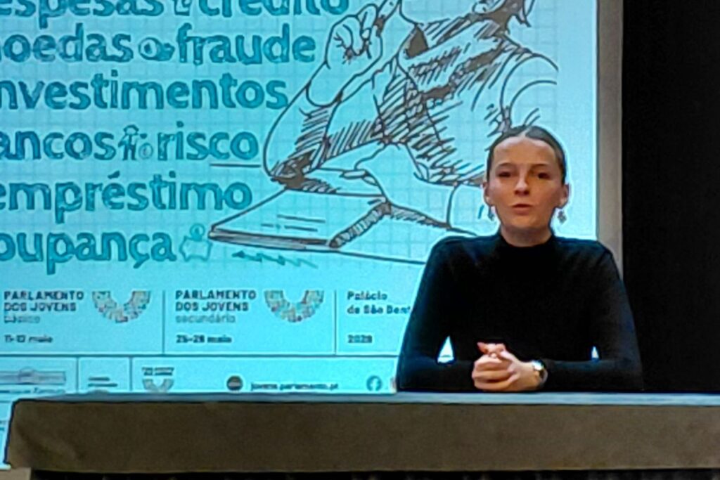 No passado dia 25 de fevereiro, a aluna Alice Kotelyanets, da turma 12.º AV, participou, na sede do Instituto Português do Desporto e Juventude (IPDJ) de Leiria, na sessão de eleição da mesa da Sessão Distrital do programa Parlamento dos Jovens.