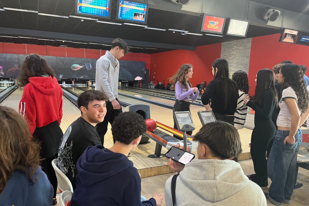 Os alunos participaram numa visita de estudo que combinou aprendizagem e convívio. Durante a manhã, no Teatro da Rainha, e no âmbito do Dia Mundial do Teatro, conheceram os bastidores, camarins e a zona técnica, compreendendo a importância da luz na criação da forma e da cor em palco. Participaram ainda num jogo de improviso que estimulou a criatividade e a comunicação. De seguida, a atividade decorreu no Bowling Caldas, onde muitos alunos tiveram uma experiência nova, marcada por grande entusiasmo, diversão e espírito de grupo. Esta visita proporcionou momentos de aprendizagem em contexto não formal, reforçando também as relações interpessoais entre os alunos.