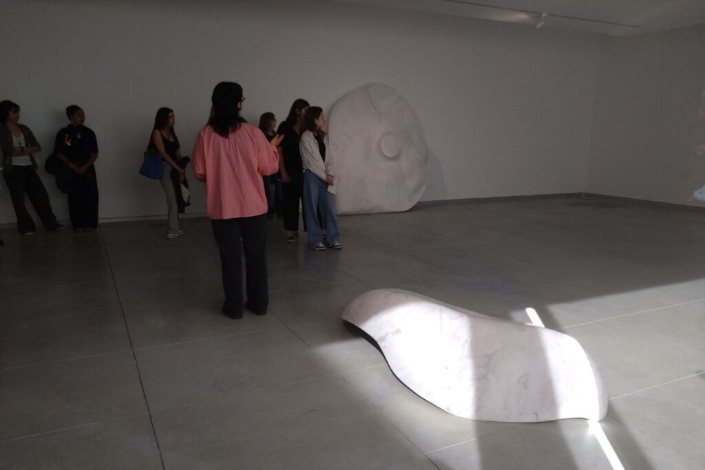 Os alunos viram um vídeo onde se podia assistir ao processo demorado que é o esculpir uma escultura numa pedreira e ao ar livre.